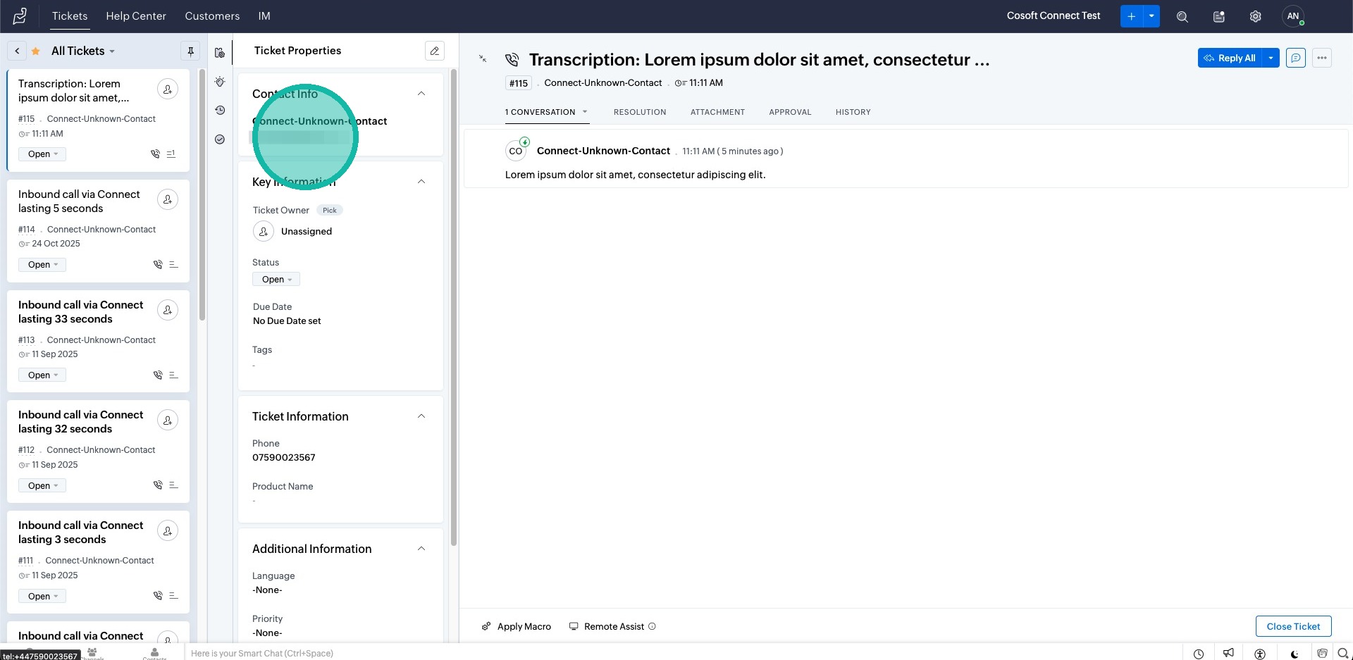 1. When ending an inbound call, a new Ticket will be created in Zoho desk